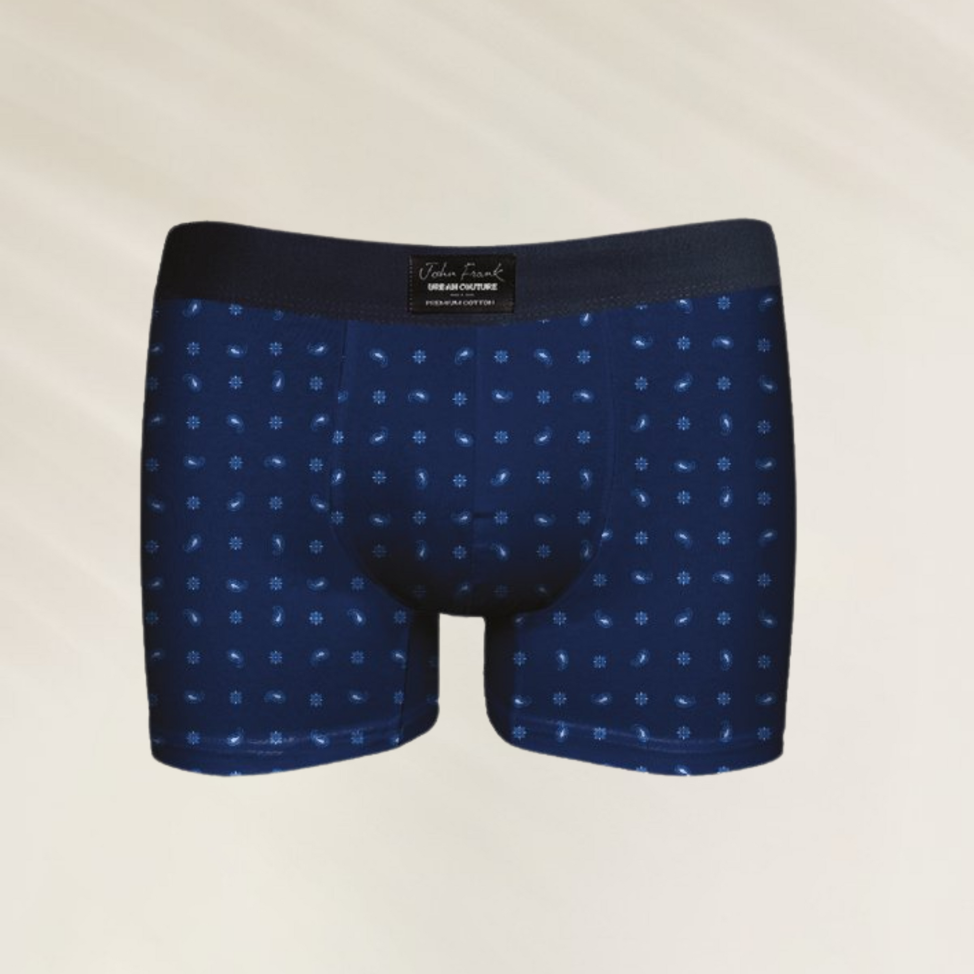 John Frank Men’s Boxer Shorts – Blue with Geometric Pattern