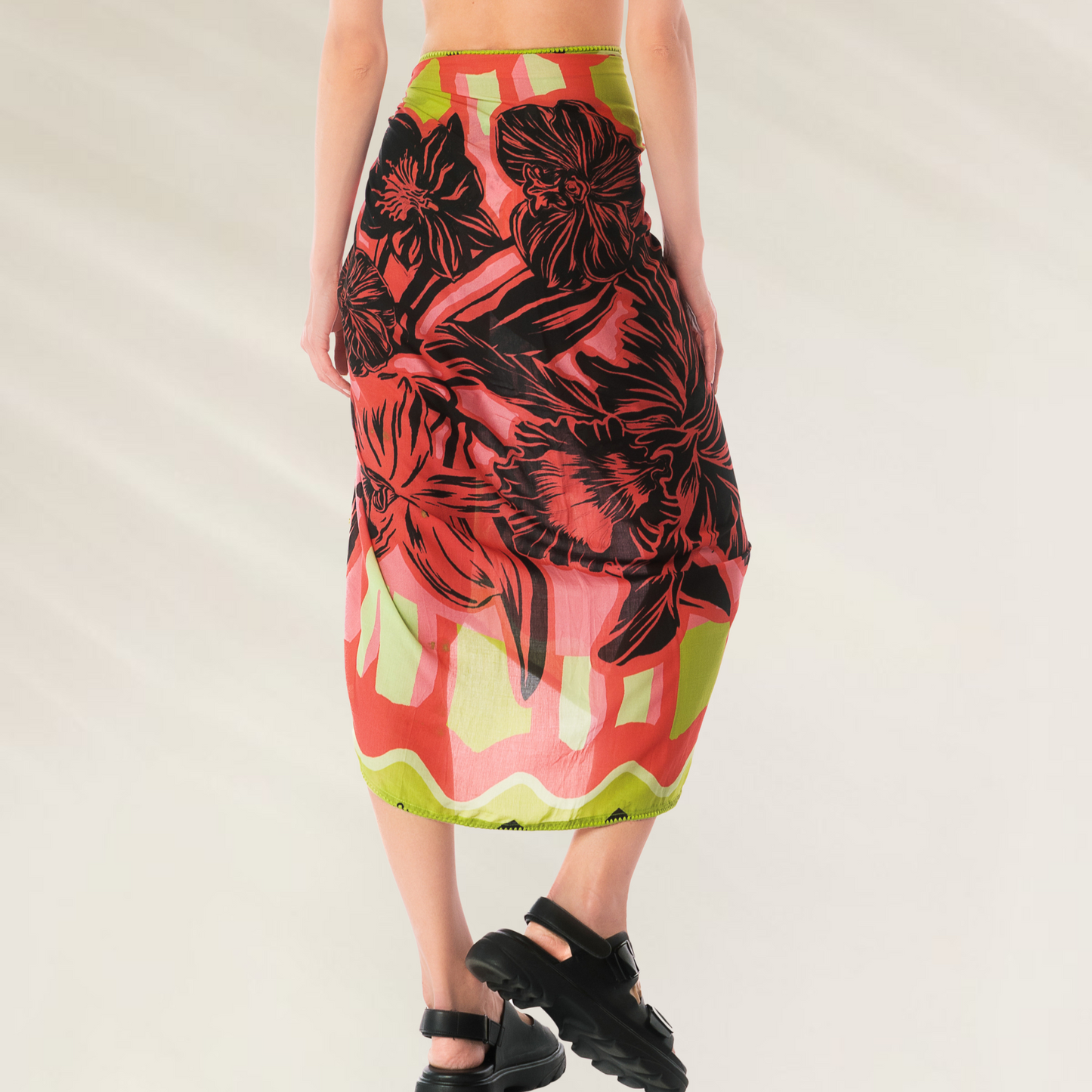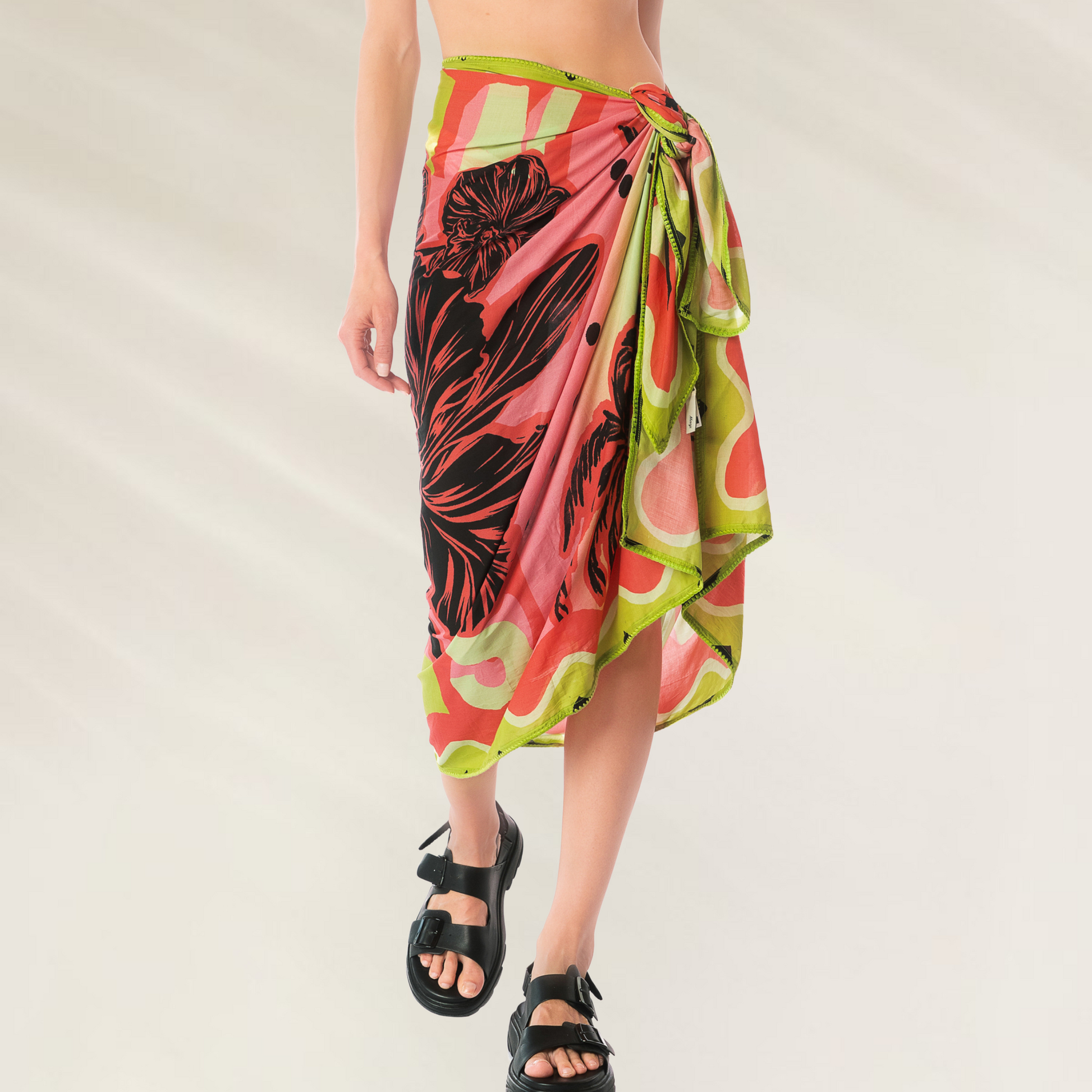 Lightweight, versatile and absolutely charming — the Isla sarong is the perfect finishing touch to your beach look. Inspired by the beauty of palm trees and tropical birds, this soft-touch sarong is designed to wrap your body with elegance and practicality, without the need for additional clothing. Made with eco-friendly materials, it combines glamour with environmental awareness.
