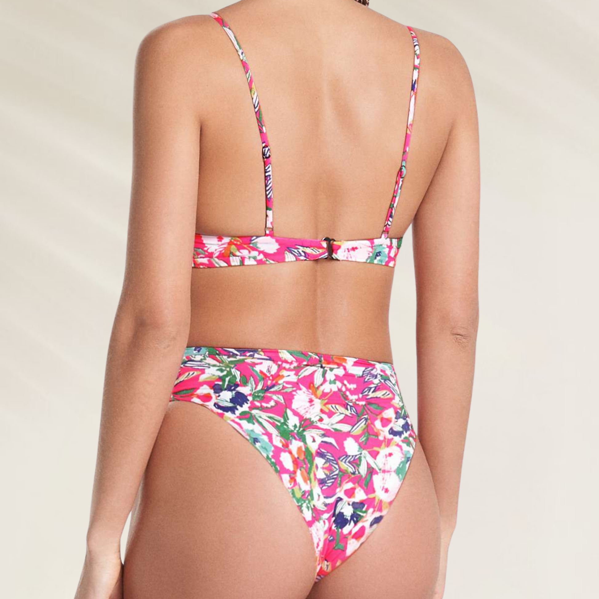 This reversible trikini from Maaji is the perfect fusion of modern design and functionality. With a vibrant floral print and thoughtful details like a front cutout, removable pads and a 3-way adjustable closure, it offers a striking yet comfortable look. The mid-cut bottom enhances your figure with charm and confidence.