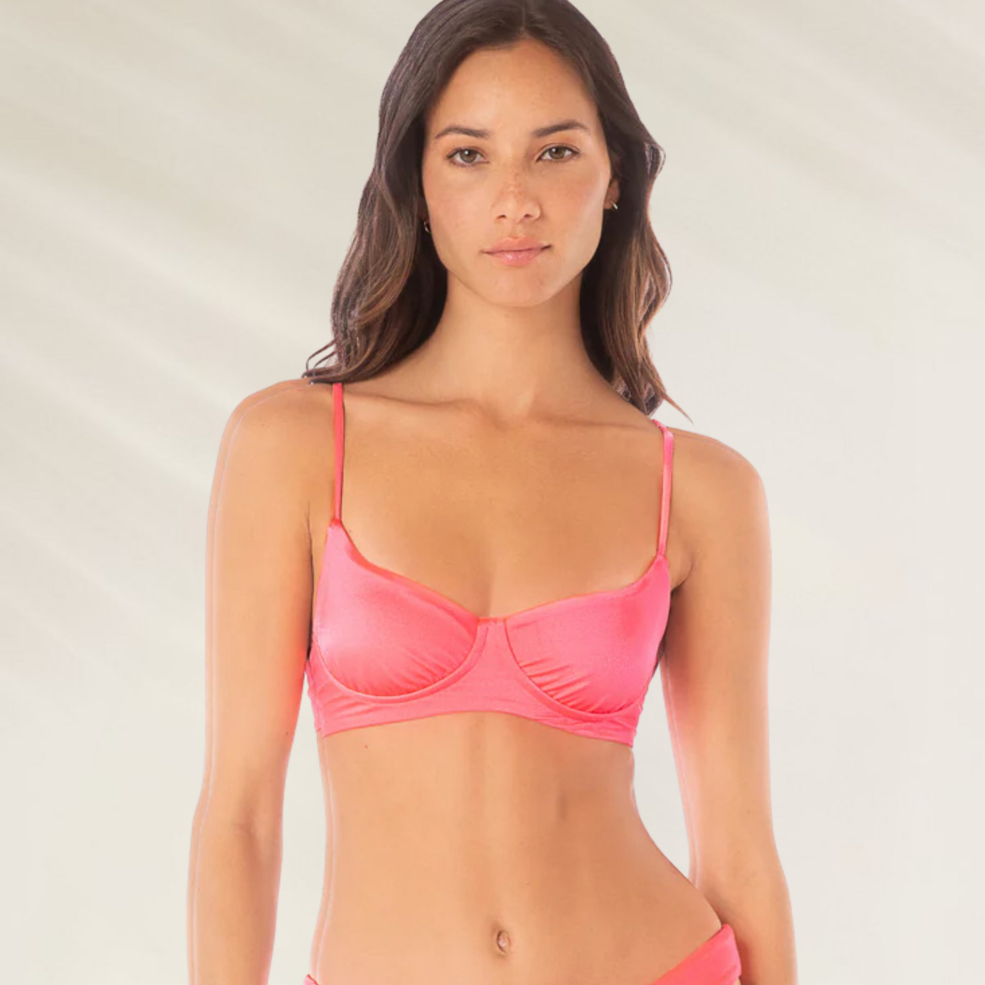 O top Archer da Maaji é a definição perfeita de charme e conforto. Com um corte tipo bralette, copas com aro para suporte e um elegante detalhe cruzado nas costas com laçada ajustável, este modelo é um verdadeiro destaque da nova coleção. O toque final? As delicadas contas artesanais e o tecido com brilho subtil que eleva o look de praia a outro nível.